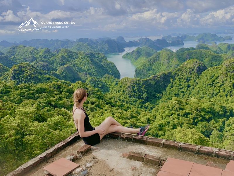From the summit, visitors can enjoy sweeping views over Lan Ha Bay, the limestone formations of Ha Long Bay, and the surrounding mountains of Cat Ba.