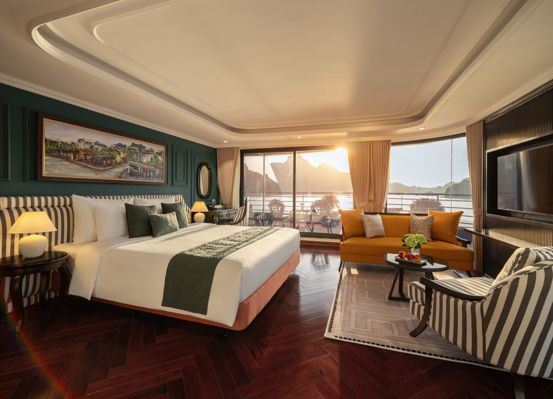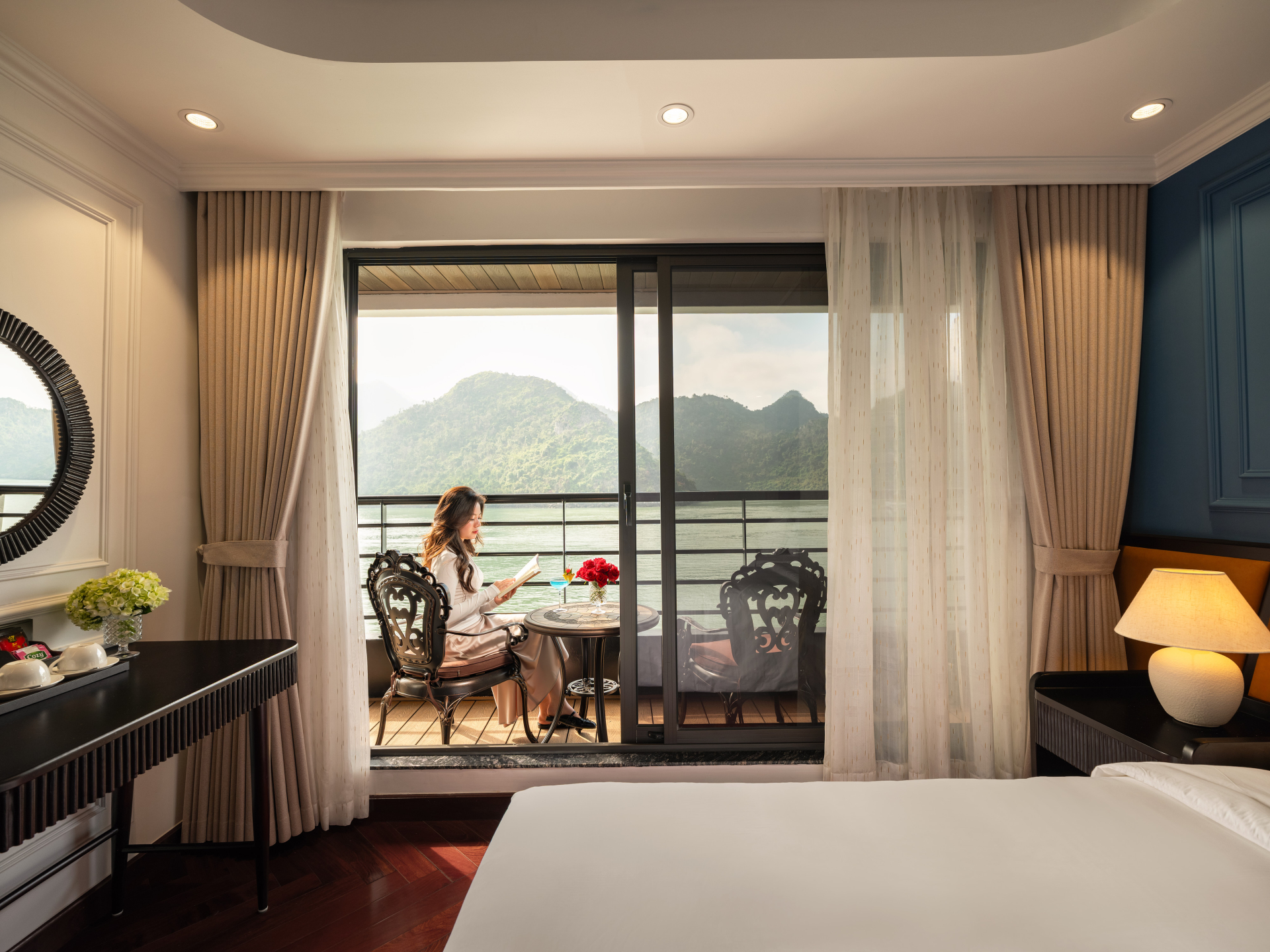 Nếu bạn muốn cân bằng giữa chi phí và trải nghiệm trên Diana cruises, cabin Senior hoặc Executive thường là lựa chọn hợp lý nhất. Hai hạng này đã có ban công riêng, tầm nhìn thoáng hơn và cảm giác ở dễ chịu hơn, nhưng chưa đẩy giá lên quá cao như Premier hay Halong Suite.