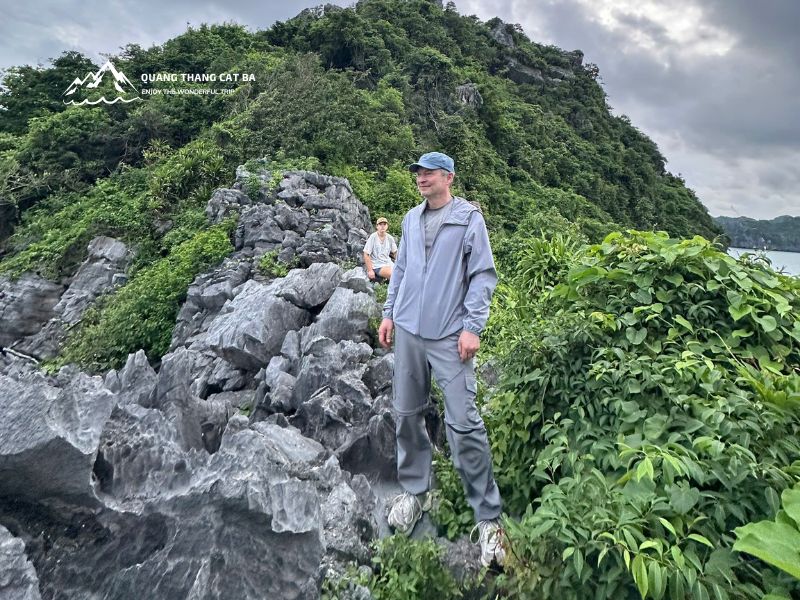Hike up to the panoramic viewpoint for breathtaking views of Lan Ha Bay – a favorite for those seeking Kinh nghiệm Trekking Cát Bà. |