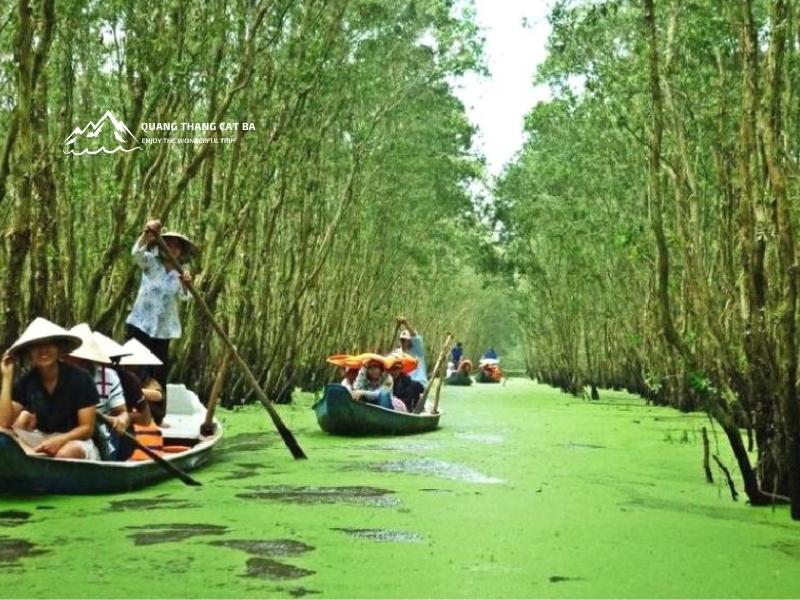 - Đặt tour trước ít nhất 1 ngày để chọn được thời điểm thủy triều lên đẹp nhất — khi nước dâng vừa tầm rễ cây, cảnh rừng phản chiếu xuống mặt nước tuyệt đẹp.