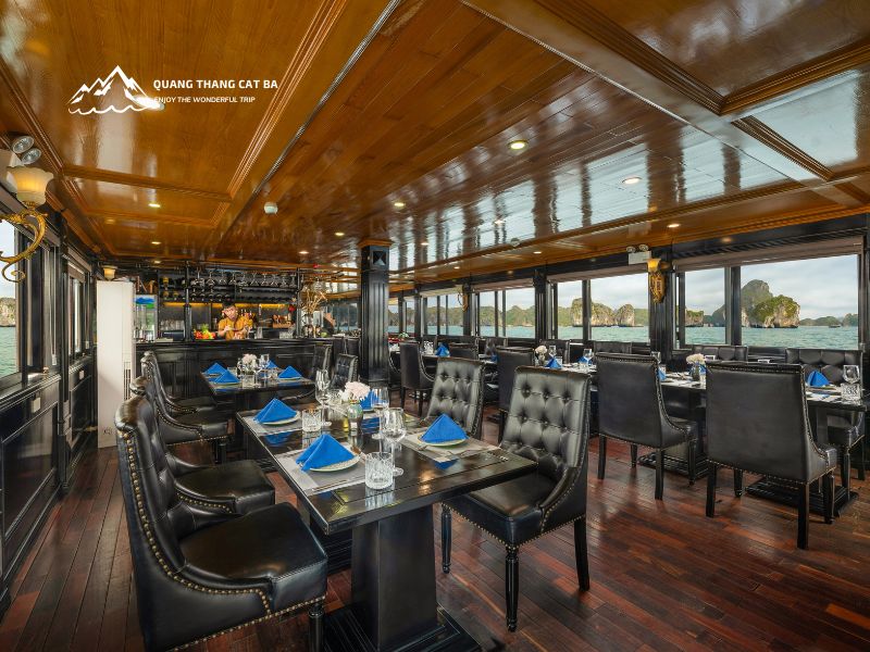 13:15 – 14:30, dùng bữa trưa trong khi tàu nhẹ nhàng di chuyển giữa cảnh sắc yên bình của Vịnh Lan Hạ.