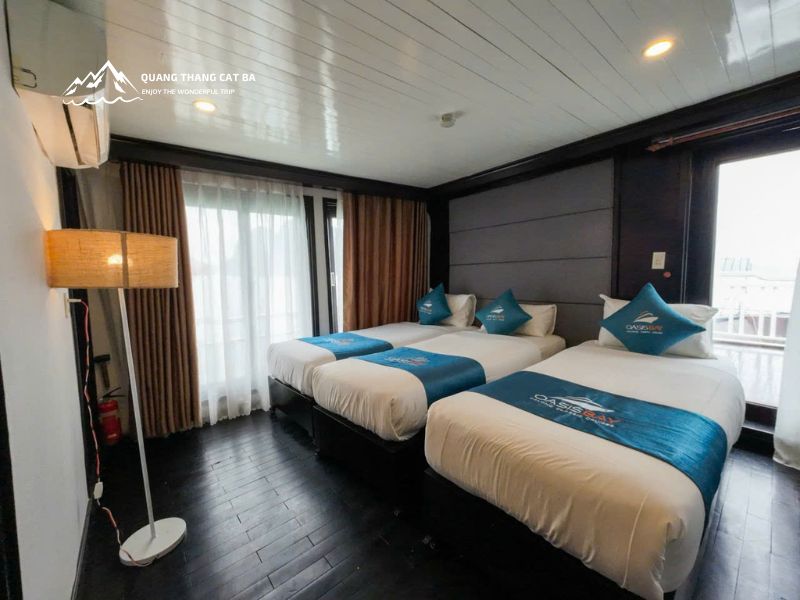 Điểm nổi bật của tour này nằm ở chất lượng du thuyền. Dù mức giá rất “dễ thở”, tàu vẫn được trang bị cabins hiện đại, điều hòa mát lạnh, cửa sổ hướng vịnh và khu boong rộng để ngắm cảnh.